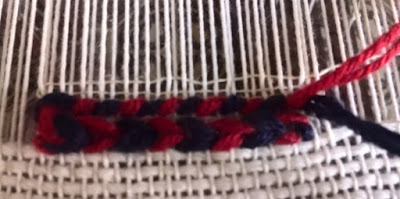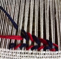 ►- (ultima trama) torzal de una vuelta: en dos colores serpenteando en dos urdimbres.