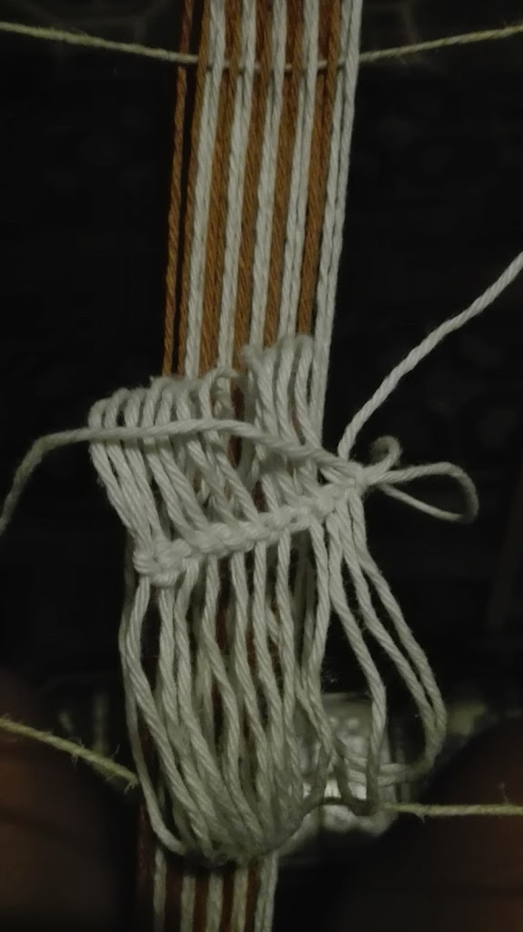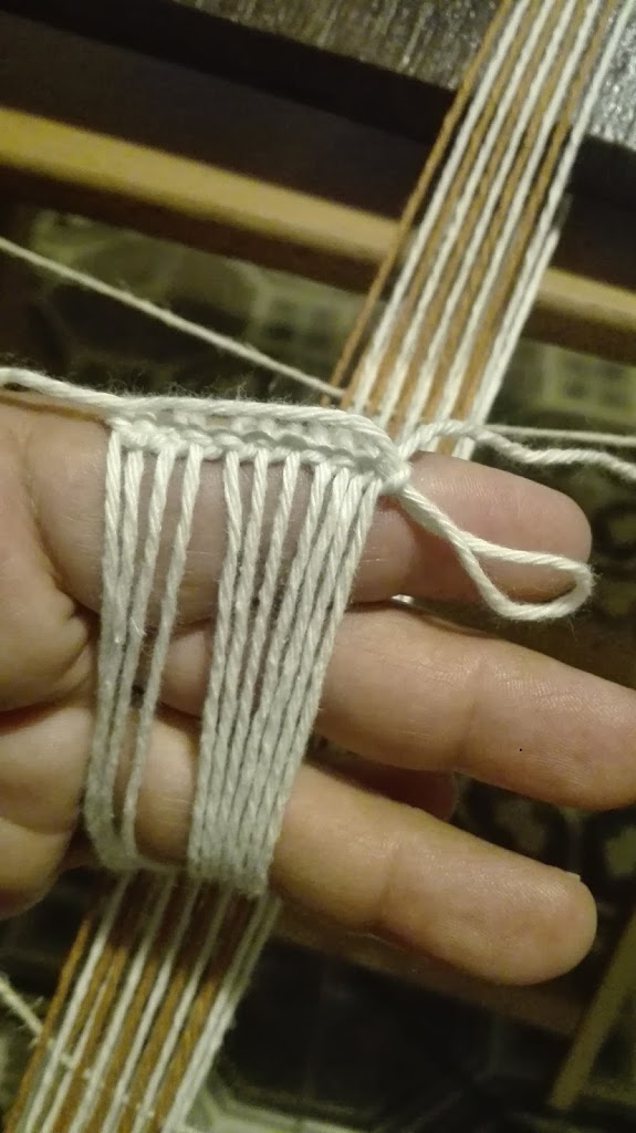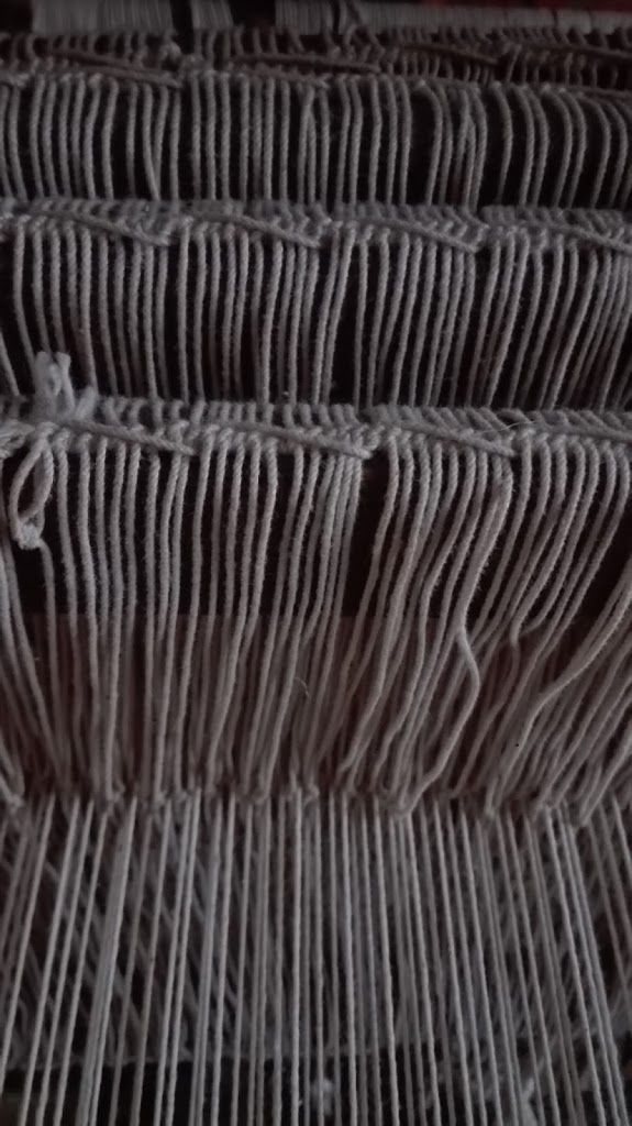 hay muchos modos de hacerlos, este es el que mas uso, forma una cadenita y quedan bien delimitados, es como se hacian los antiguos lisos de los telares a pedal, en las siguientes fotos y en el telar a pedal que esta en la foto siguiente, se puede distinguir la cadenita, en los bordes de los cuadros que contienen los lisos.
