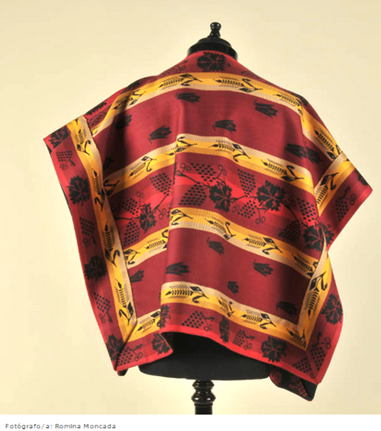 textil característico del huaso chileno, su doble faz, el lado más oscuro se usa de día y el más claro de noche, actualmente valuado en aproximadamente 3.400 euros.