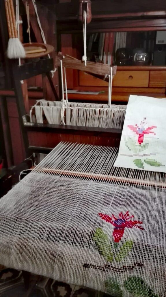 Nel piccolo spazio-laboratorio familiare con tessili di lana, strumenti e macchine, nasce la mia passione per la tessitura.